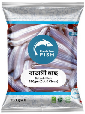 তাজা বাতাসি মাছ (২৫০ গ্রাম) – রান্নার জন্য প্রস্তুত সমুদ্র থেকে সরাসরি সংগ্রহ করা একেবারে টাটকা বাতাসি মাছ। সতর্কভাবে পরিষ্কার