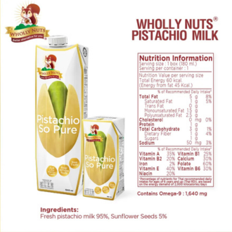 Made from 100 % whole pistachios and processed at ultra-high temperature for nutrient preservation, this clean, lean plant-milk is dairy-free,