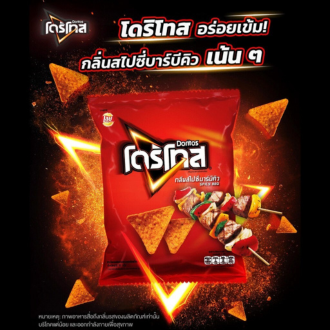 Doritos Spicy Barbecue Tortilla Chips 72g Crispy corn tortilla chips coated in bold spicy barbecue seasoning. Smoky, savoury, and slightly