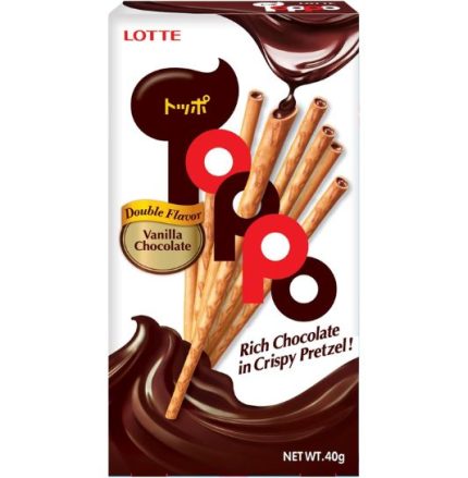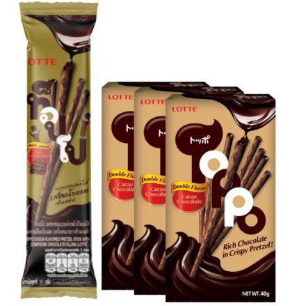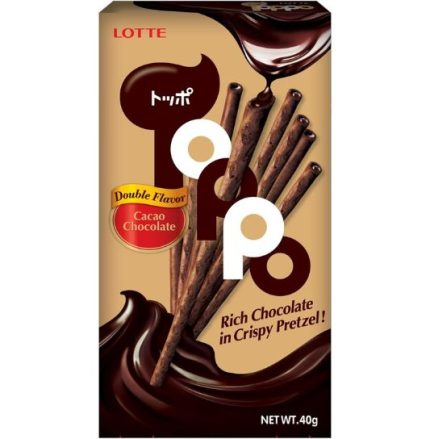 Lotte Toppo Cocoa Pretzel Stick with Chocolate Cream 11g Lotte Toppo Cocoa Pretzel Stick with Chocolate Cream 11g pairs a crunchy cocoa pretzel exterior with a smooth chocolate cream center for a satisfying sweet and salty snack in a convenient single‑serve size. Designed for retail shelves, convenience counters and foodservice displays, it delivers consistent taste and texture that appeal to a broad range of customers. Ideal for on‑the‑go enjoyment and impulse purchase occasions, it’s a flavorful addition to any snack selection.