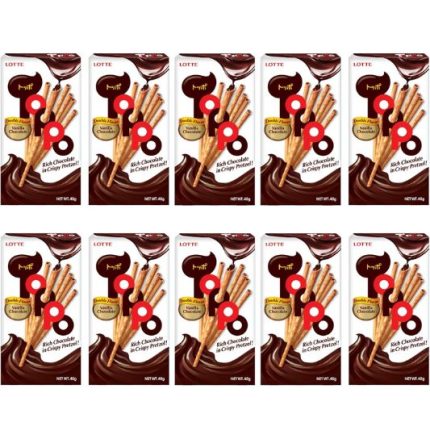 Lotte Toppo Vanilla Pretzel Stick With Chocolate Cream 11g is a delicious bite-sized snack that combines crunchy vanilla-flavored pretzel sticks with a rich chocolate cream filling. Each stick is baked to perfection, giving a crispy texture on the outside and smooth, creamy chocolate on the inside. Perfect for quick snacking, lunch boxes, travel, or anytime you want a light and tasty treat. The 11g pack size makes it easy to carry and enjoy anywhere.