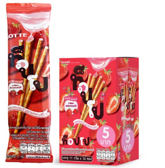 Lotte Toppo Vanilla Pretzel Stick With Strawberry Cream 11g is a delicious bite-sized snack featuring crispy vanilla-flavored pretzel sticks filled with smooth and sweet strawberry cream. Each stick offers the perfect balance of crunchy texture and creamy fruity filling, making it an ideal treat for quick snacking anytime, anywhere. Conveniently packed in a small 11g portion, it’s great for lunchboxes, travel, or enjoying on the go.
