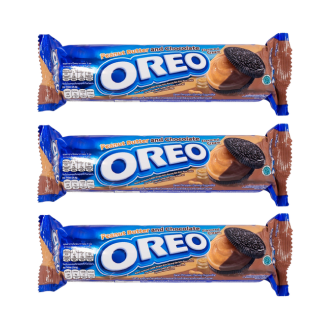 Oreo Chocolate Sandwich Cookies With Peanut Butter and Chocolate Flavor Cream 27.6g, made in Thailand. This delicious twist on the classic Oreo features crunchy, rich chocolate cookies filled with a smooth, indulgent blend of peanut butter and chocolate flavor cream. Each bite delivers the perfect balance of nutty sweetness and deep cocoa richness. Conveniently packed in a 27.6g snack-size portion, it’s ideal for on-the-go snacking, lunchboxes, or a quick, satisfying treat anytime. A must-try for peanut butter and chocolate lovers alike.