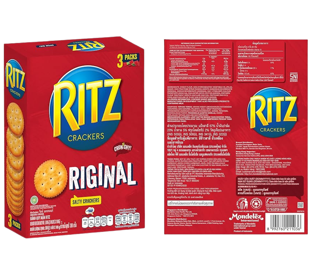 Ritz Original Salty Crackers 300g deliver the classic, light and buttery taste that customers know and love. Baked to a golden crisp with a balanced salty finish, these versatile crackers are perfect on their own or paired with dips, cheeses and spreads. Packaged in a convenient 300g size for foodservice and retail, they offer consistent quality and great snacking appeal. Ideal for cafés, restaurants, catering services and retail environments looking to add a trusted favorite to their product range.